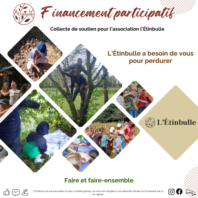 À l’Étinbulle les participants découvrent par l’action pour apprendre au contact de la nature. Ils testent, expérimentent, réalisent en mettant en œuvre des matériaux et des savoirs faire naturels remontant parfois à la Préhistoire.