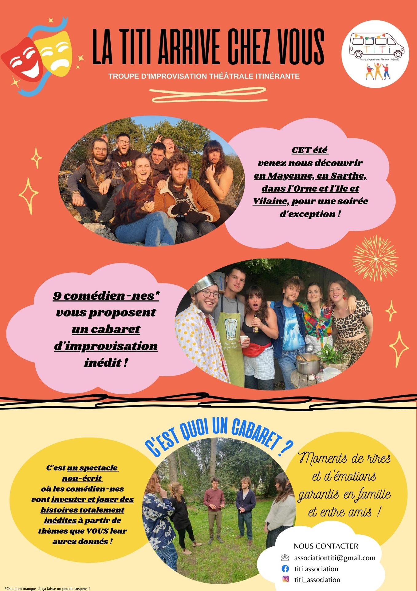 En tournée dans les pays de la Loire, les 9 comédiens de TITI posent le temps d'une soirée "cabaret d'impro" leur camion à l'Étinbulle.