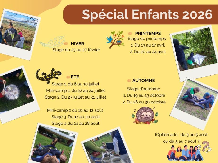 À la belle saison uniquement. Trois jours pour vivre une grande expérience en plein air. Vivre le quotidien d'un petit préhisto ou explorer la nature sauvage. Sans oublier les veillées, les jeux et les repas partagés et de nouvelles amitiés !